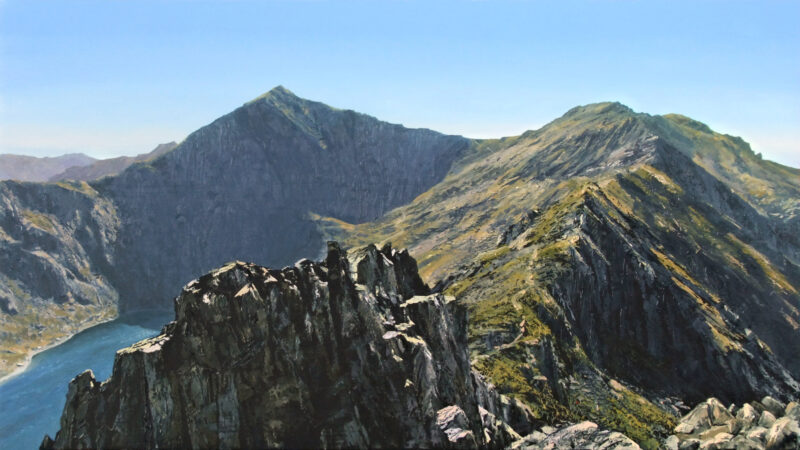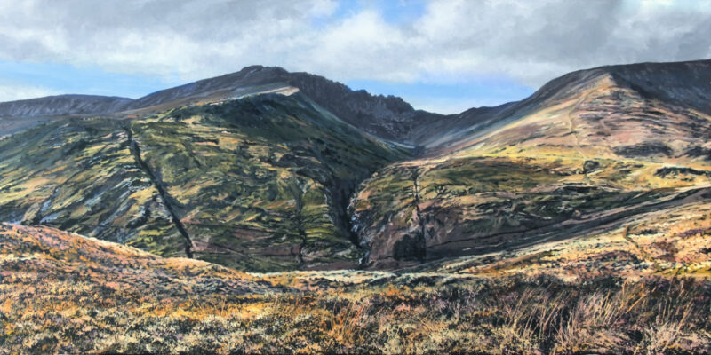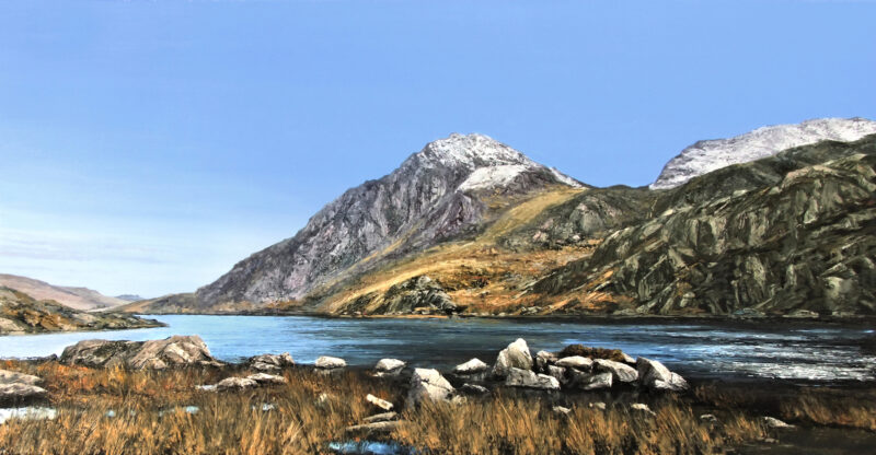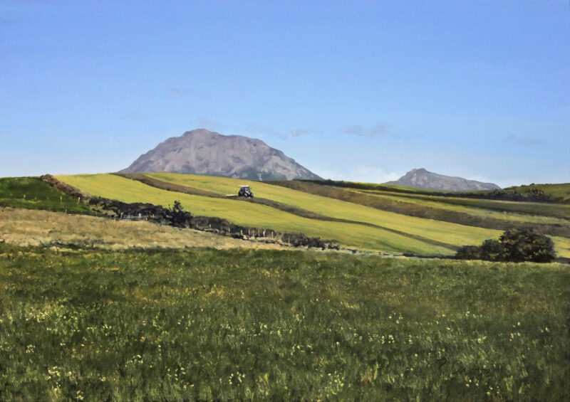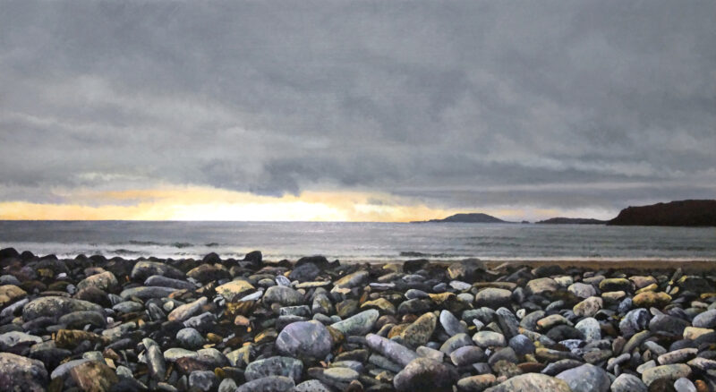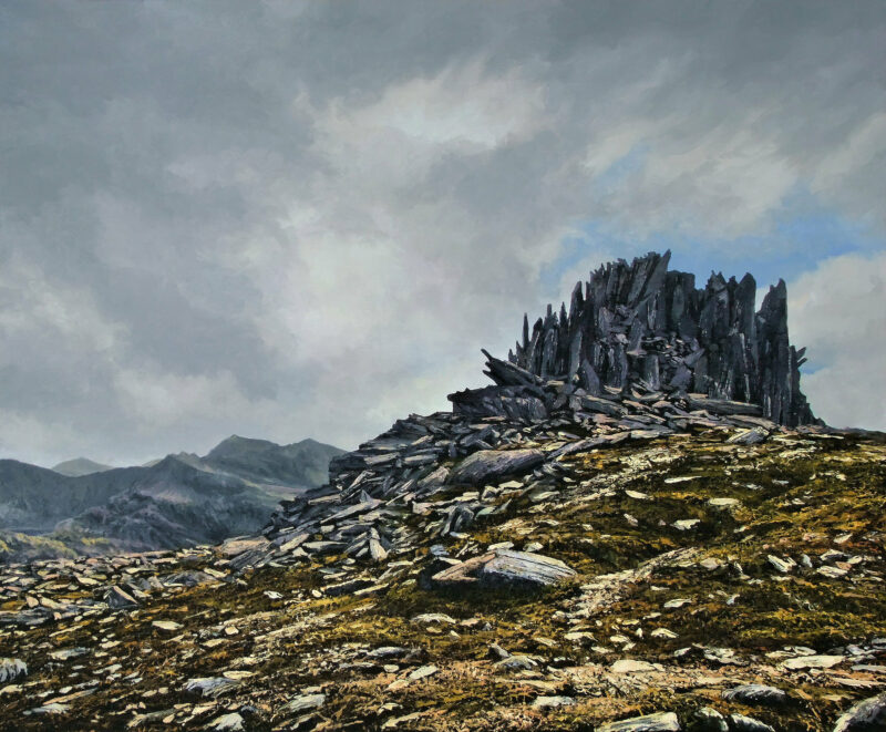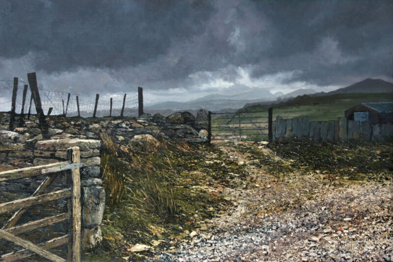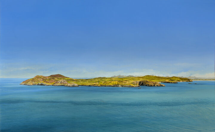 Ar ôl gorffen fy mhrosiect diweddaraf, ‘Chwilio am Gymru’ yn 2024, doeddwn i wir ddim yn disgwyl arddangos yn unman arall tan 2026 neu 2027, felly cefais fy synnu’n fawr i dderbyn gwahoddiad yn annisgwyl i gynnal arddangosfa unigol lawn unwaith eto yn ‘Oriel Kyffin’, ym Mhlas Glyn-y-Weddw ym mis Hydref 2025. Roeddwn i wedi bod yn chwarae gyda’r syniad o gynhyrchu cyfres o baentiadau yn darlunio Ynys Enlli, a chyda chefnogaeth yr oriel, cefais fy annog i ddatblygu’r syniad hwn ymhellach i greu corff llawn o waith.