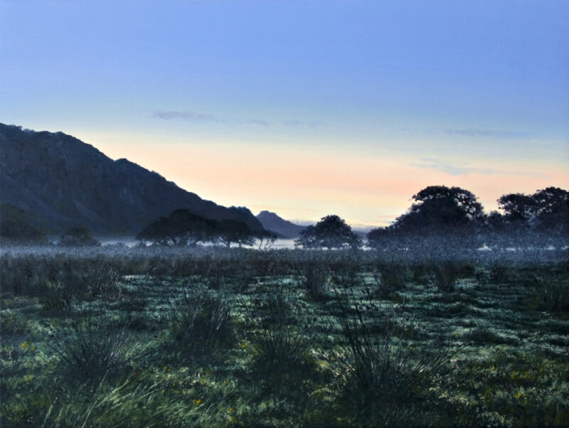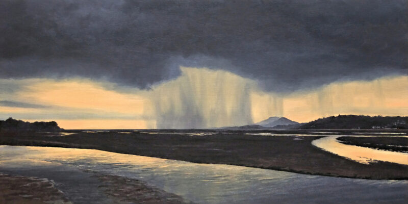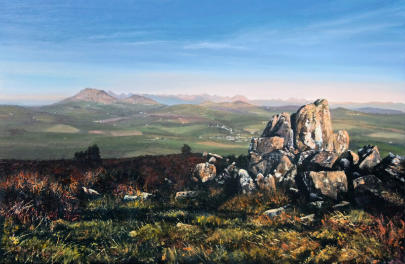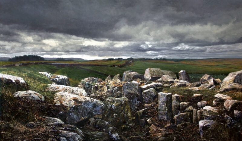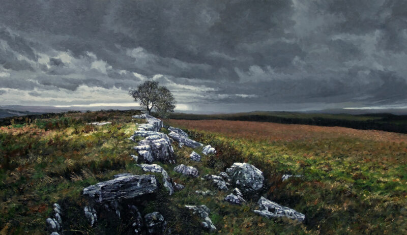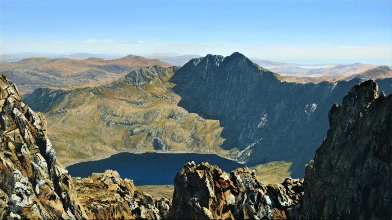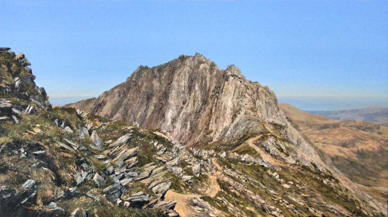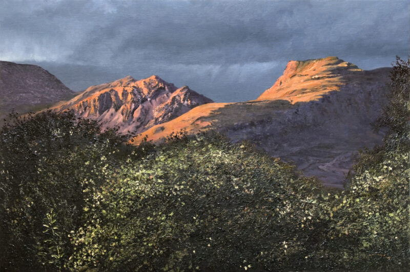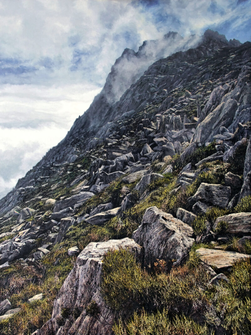 Ar ôl gorffen fy mhrosiect diweddaraf, ‘Chwilio am Gymru’ yn 2024, doeddwn i wir ddim yn disgwyl arddangos yn unman arall tan 2026 neu 2027, felly cefais fy synnu’n fawr i dderbyn gwahoddiad yn annisgwyl i gynnal arddangosfa unigol lawn unwaith eto yn ‘Oriel Kyffin’, ym Mhlas Glyn-y-Weddw ym mis Hydref 2025. Roeddwn i wedi bod yn chwarae gyda’r syniad o gynhyrchu cyfres o baentiadau yn darlunio Ynys Enlli, a chyda chefnogaeth yr oriel, cefais fy annog i ddatblygu’r syniad hwn ymhellach i greu corff llawn o waith.