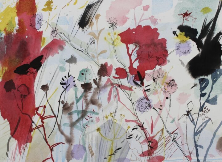 "Paintings of Welsh landscape and nature, based on direct observation and memory. Work which explores colour and mark making, focusing on variations in weather and season. Each piece represents a period of time spent looking and painting in the field. Colour washes are left to chance and combined with more precise lines, as a way of layering and reflecting both the structural and ephemeral qualities found in nature."